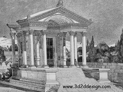 2. الطريقة الزخرفية في استعمال الأنظمة المختلفة الواحدة فوق الأخرى وهي طريقة تستعمل في العمارة الإغريقية .
