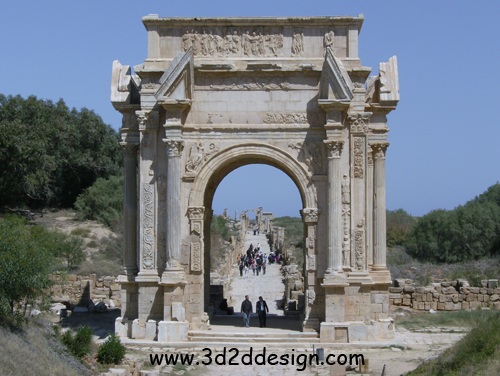 شيد عام 204 ، وهو قوس ذو ثلاث فتحات مصنوع من الرخام الأبيض وترتكز عقوده على أكتاف في مقدمتها أعمدة على النظام المركب ، ويحتوي الكتف القبلي على سلم يوصل إلى الأعلى. ومن أشهر وأفضل الأقواس الرومانية أيضاً قوس الإمبراطور قسنطنطين الذي شيد في عام 315ق.م.